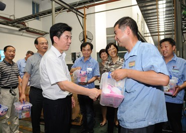 7月12日下午,蘇州市總工會主席溫祥華等市總領導,在創(chuàng)元投資紀委書記郁天、公司控股子公司蘇州軸承總經(jīng)理沈洪洋、黨委書記傅勤衡的陪同下,來到公司控股子公司蘇州軸承生產(chǎn)車間現(xiàn)場,向在高溫下堅守生產(chǎn)崗位的一線員工表示慰問,叮囑員工們在保質(zhì)保量的同時,一定要注意勞逸結(jié)合并送上了夏季防暑清涼用品。在與公司領導交談中,溫主席一行詳細詢問了蘇州軸承防暑降溫和安全生產(chǎn)工作,他要求蘇州軸承一定要把防暑降溫和安全生產(chǎn)措施落到實處,切實保障好夏季高溫一線員工的生產(chǎn)安全和身體健康。